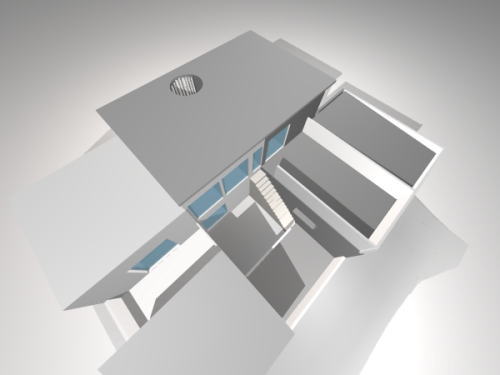 ■傾斜地での設計施工例 「どうですか?やりがいあるでしょ。」 お施主さんと同行して敷地を見たときは 「やりがいありますね。」 簡単な答えですが自信を持って答えたのです。 その敷地は丘のようにこんもりと盛り上がった 高台にありました。 東にも南にも傾斜している敷地 斜めになっていない箇所がなかったのです。 ![]() 北から南に傾斜しているなど一方向の傾斜地は過去にも設計していました。 こうした敷地の場合排水をどうするかが悩みの種になります。 幸いにも隣地境界に側溝を設ける事で排水計画ができそうでした。 あとは道路からの車の乗り入れです。 2台分のガレージに3台分の屋外駐車場 道路は全部傾斜しています。 たいていの場合多くて2台、もしくは3台 これにはかなり頭を悩ませました。 実際敷地を計測して データを見てもどこからも車が入れにくいのです。 ![]() そして、傾斜地の醍醐味と言えるレベル差です。 便宜上、1階、2階などと決めて設計はしますが 実際基準となる高さは誰も教えてくれないわけです。 かなり強い意思をもって基準となる高さを設定しないと いろんな人の意見で覆されてしまうのが傾斜地の設計なのです。 自信を持って各フロアの高さを決めてつなぐ為には 何度もその家のことを頭で思い浮かべて設計しなければなりません。 ![]() 手がかりはガレージのレベルです。 そこからガレージの見える中庭、書斎、リビングの高さを決定 傾斜地での設計の回答はマニュアルにはありません。 ![]() リビングとダイニングは傾斜地の為スキップフロアにしました。 玄関をどこにするかでは私にはあるイメージがありました。 玄関から中庭が見おろす事ができて だんだんリビングダイニングに下りる ドアを開けて玄関に入ったとき様々な部分が 目で見て期待できるプランニングでなければならなかったのです。 ![]() でも、今回の敷地はどこも傾斜している。 イメージを施主に伝えるのは至難の技です。 模型やスケッチ、CGなどで伝えていく事しかできません。 玄関を入って階段を下りるとダイニングへ行きます。 この時点で普通の家では考えられないような説明の難しさが生じます。 だんだん下りていく、そんなプランはそうはありません。 ![]() でも中に入って外が気持ちよく見えてくる傾斜地のよさを 私は過去の設計と実績で知っていました。 私の体験やイメージを語って伝えていくしか方法はないのです。 一つ一つの段差について意味を考え 窓から見える景色についても解説すること 傾斜地での設計はイメージと経験を土の上に載せていく作業なのです。 傾斜地の設計: 建築家 信太淳英 |