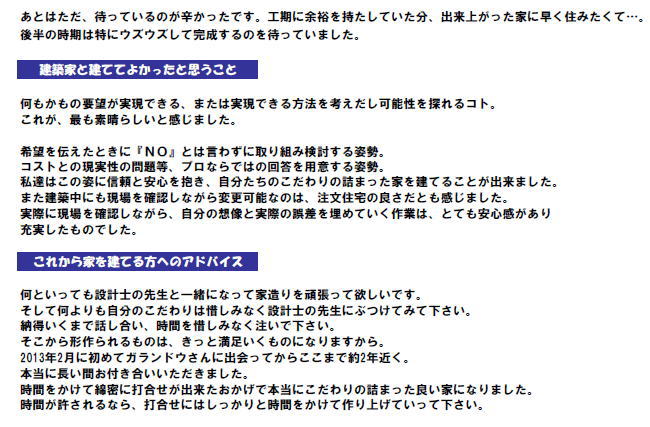 愛知県大府市の住宅のお施主様の声をご紹介いたします