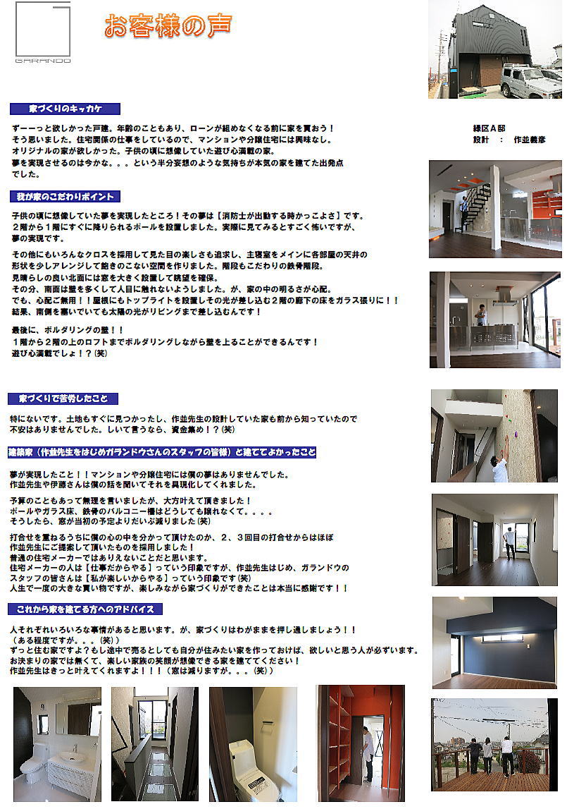 愛知県名古屋市緑区の住宅のお施主様の声をご紹介いたします