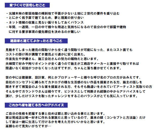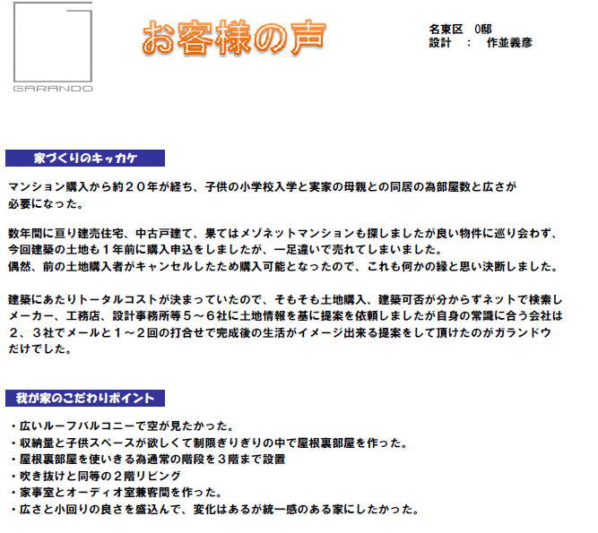 愛知県名古屋市の住宅設計、お施主様の声をご紹介いたします