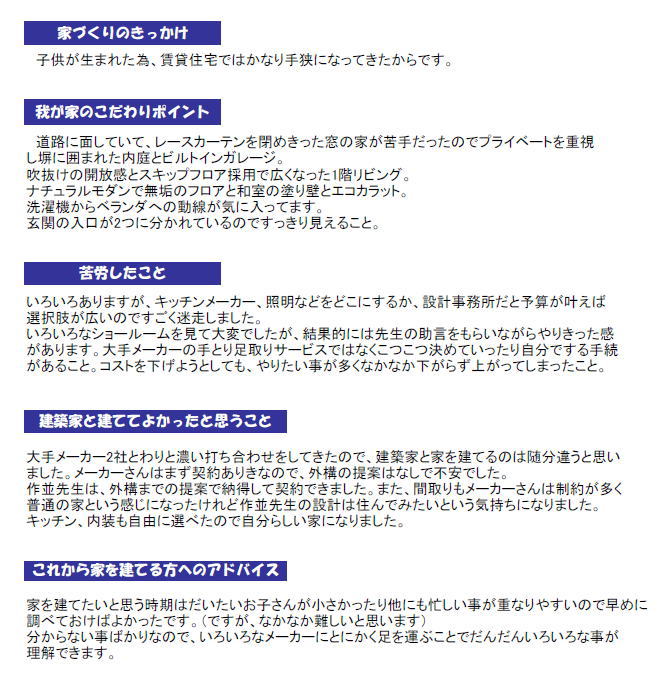 愛知県愛知県小牧市の住宅設計、お施主様の声をご紹介いたします