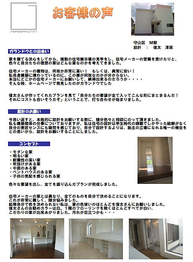愛知県名古屋市、M邸のお施主様の声をご紹介いたします