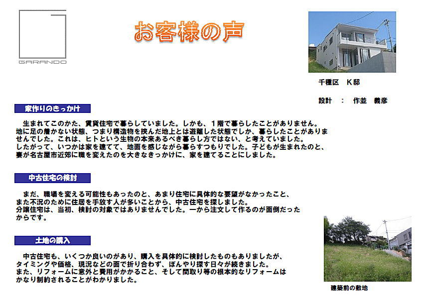 愛知県名古屋市千種区K邸のお施主様の声をご紹介いたします